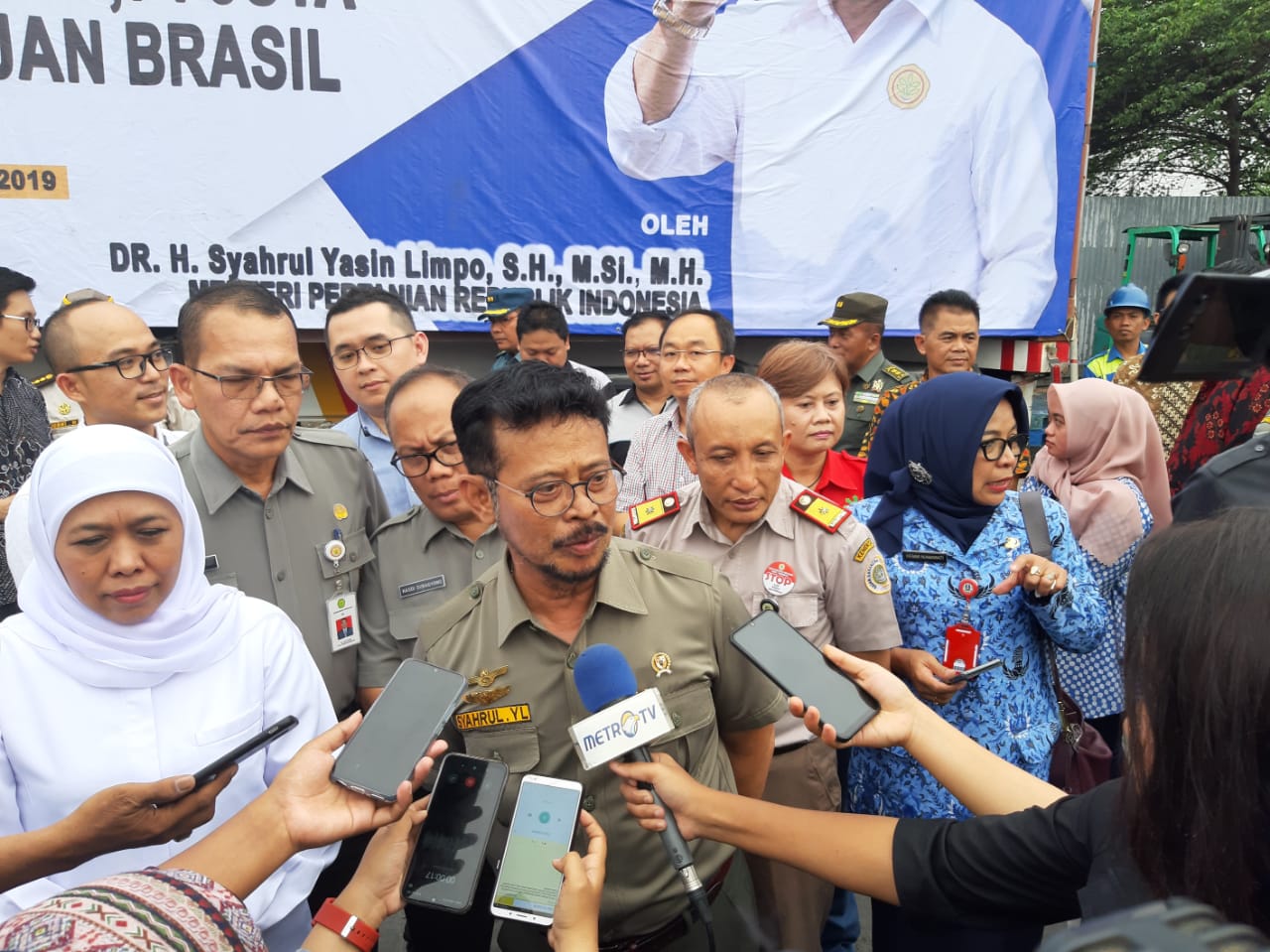 Surabaya – Komitmen Kementerian Pertanian mendorong ekspor tiga kali lipat nampaknya semakin terwujud. Hal tersebut dibuktikan dengan dilepasnya ekspor komoditas pertanian ke tiga negara tujuan antara lain Brasil, Italia, dan Singapura yang langsung dilepas Menteri Pertanian (Mentan) Syahrul Yasin Limpo (SYL) dan Gubernur Jawa Timur, Hj Khofifah Indar Parawansa di Pelabuhan Tanjung Perak, Surabaya, Provinsi Jawa Timur, Senen (2/12/2019).