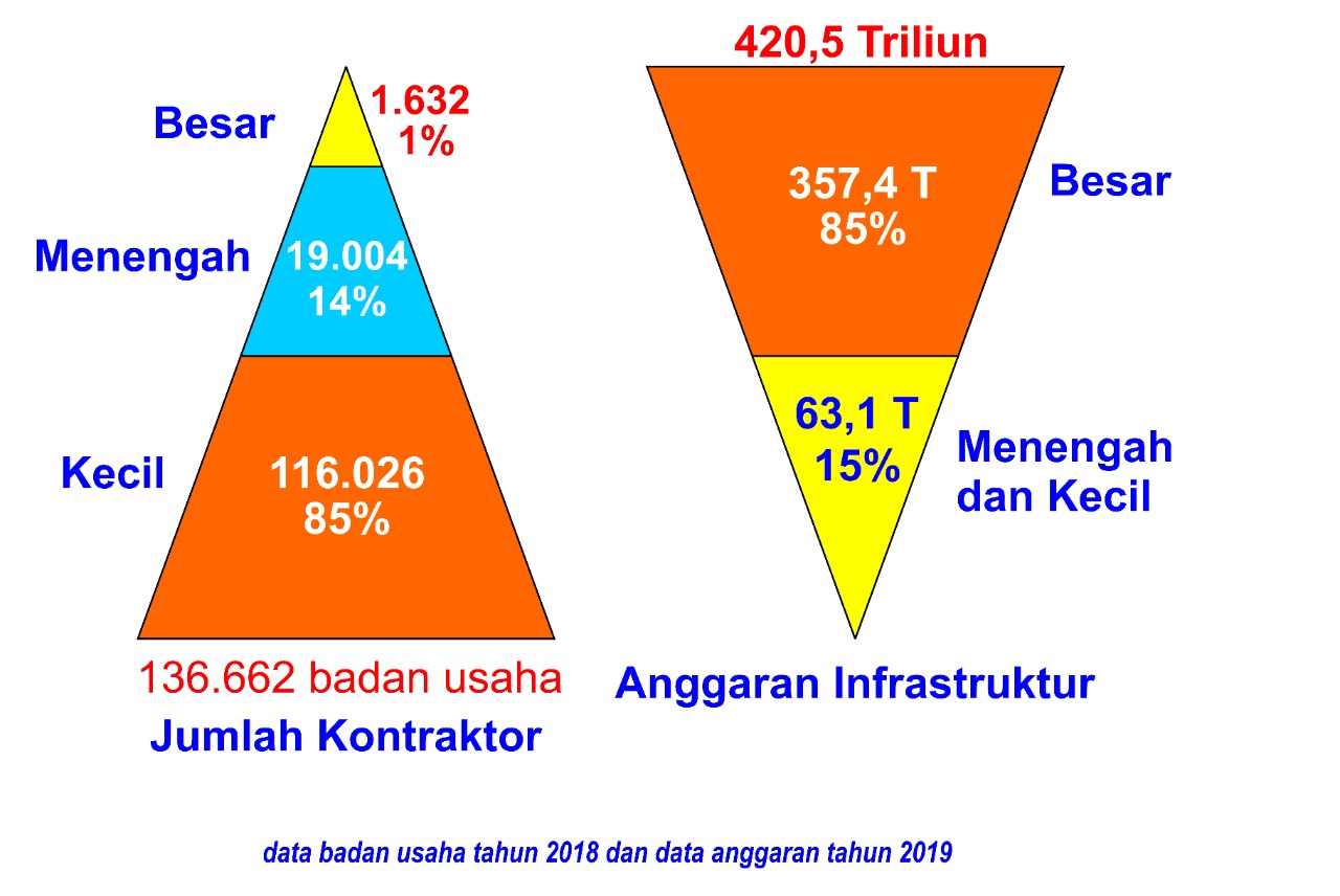 Sementara proyek besar senilai 357 Triliun dilaksanakan oleh kontraktor kualifikasi besar saja, sisanya yang 63,1 T digarap oleh kontraktor menengah dan kecil.