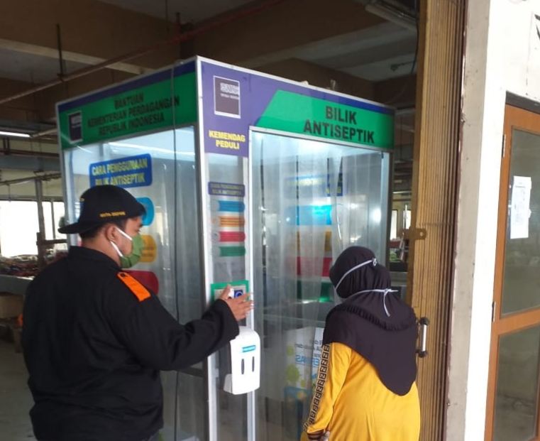 “Jadi, para pedagang dan pengunjung pasar yang akan masuk ke area pasar akan disterilisasi dulu melalui bilik disinfektan,” kata Zamrowi, Senin (21/09/20).