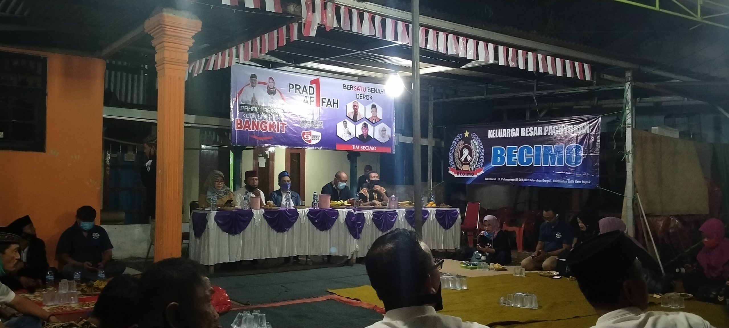 Seperti diketahui, paguyuban Beji, Cinere, Limo (BECIMO) mendeklarasikan diri siap mendukung dan memenangkan pasangan Pradi-Afifah dikediaman H Iwan Predi, Jalan H Raim, Kelurahan Grogol, Kecamatan Limo, Kota Depok, Sabtu (3/10/20) malam.