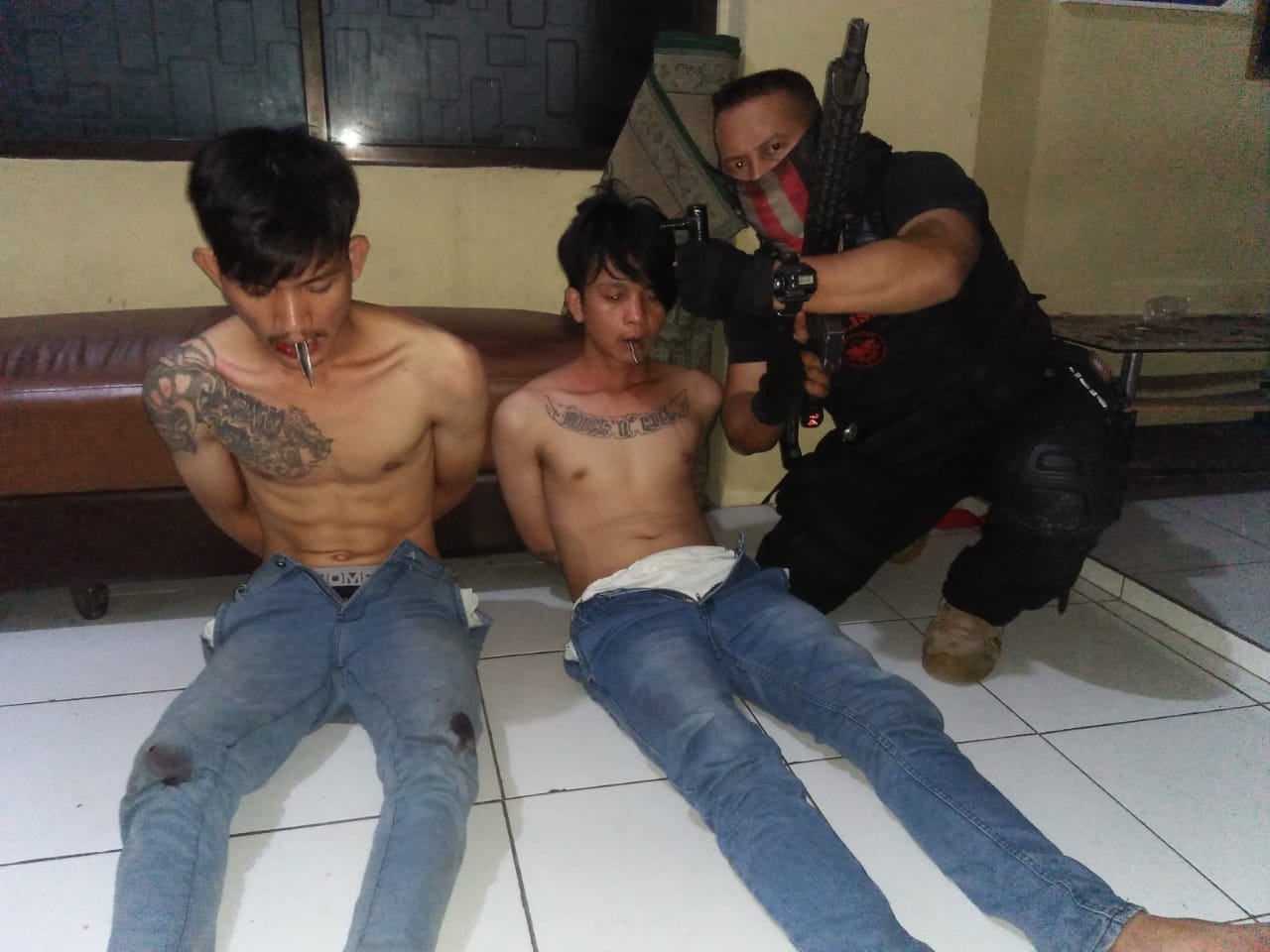 Katim Jaguar Polres Metro Depok Iptu Winam Agus mengatakan kedua pelaku yang diamankan berusia sekitar 25 tahun itu berasal dari Bekasi, Jawa Barat, tidak berkutik setelah diamankan anggota Jaguar yang sedang patroli.