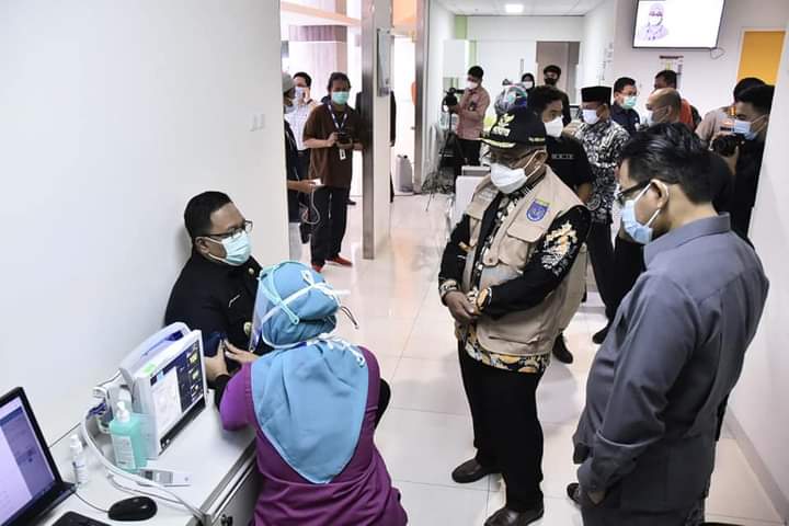 KabarLagi.Com-Rumah Sakit Universitas Indonesia (RSUI) menjadi lokasi kegiatan peluncuran program vaksinasi Covid-19 di Kota Depok pada Kamis (14/1/2021). Dalam kegiatan tersebut, sebanyak 10 pejabat Forum Komunikasi Pimpinan Daerah (Forkopimda) Kota Depok dan 68 tenaga kesehatan disuntik vaksin Sinovac yang menandai dimulainya program vaksinasi tahap pertama di Kota Depok.