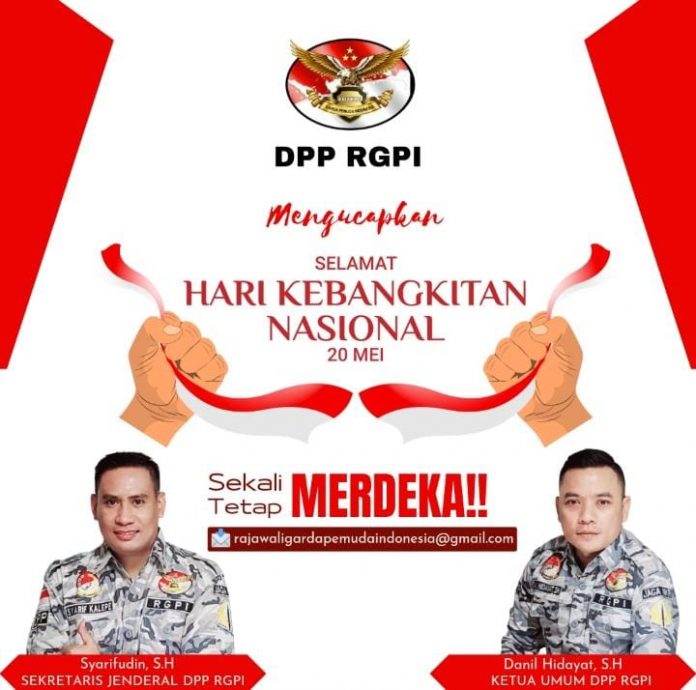 Sementara itu, Syarif Kalepe Sekertaris Jenderal DPP RGPI menegaskan peringatan Hari Kebangkitan Nasional tahun 2021 ini harus dijadikan oleh bangsa Indonesia sebagai momentum membangkitkan spirit gotong royong, menjaga toleransi antar sesama anak bangsa yang kemudian terciptalah persatuan dan kesatuan di tanah air dari Sabang sampai Merauke, sebagaimana yang tertuang dalam sila ketiga Pancasila yang berbunyi “Persatuan Indonesia”.