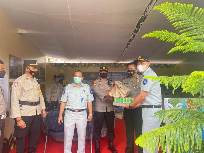 KabarLagi.Com — Kombes Pol Djoni Widodo, S.I.K didampingi oleh Kepala PT Jasa Raharja NTB Bapak Emil Feriansyah Latief melakukan pengecekan Pos Pam Operasi Lilin Rinjani 2021 di Kebon Roek dan Sasaku, Senin, 27 Desember 2021. Kunjungan ini sekaligus untuk memberikan bingkisan kepada para petugas yang sedang melaksanakan Operasi.