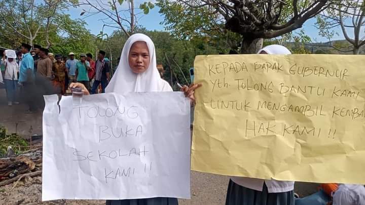 Kemunculan foto para siswa yang melakukan demonstrasi dengan tulisan meminta bantuan Gubernur NTB itu diunggah oleh akun Facebook @Ramdinll. Dalam tulisan tersebut para siswa mamamerkan pamflet bertulisan ” Pak Gubernur YTh Tolong Bantu Kami untuk mengambil hak kami,”