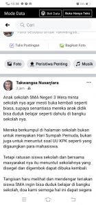 Bahkan pantauan redaksi di akun Facebook Gubernur NTB juga turut diserbu netizen dengan mengirimkan foto serta informasi demonstrasi para siswa.