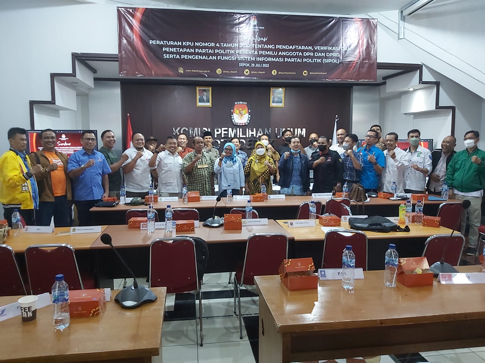 KabarLagi.Com — Komisi Pemilihan Umum (KPU) Kota Depok melaksanakan Sosialisasi Peraturan Komisi Pemilihan Umum (PKPU) Nomor 4 Tahun 2022 tentang Pendaftaran, Verifikasi dan Penetapan Partai Politik Peserta Pemilihan Umum Anggota Dewan Perwakilan Rakyat dan Dewan Perwakilan Rakyat Daerah. Kegiatan ini dilaksanakan di Kantor KPU Kota Depok Jl. Margonda No.379 – Depok.