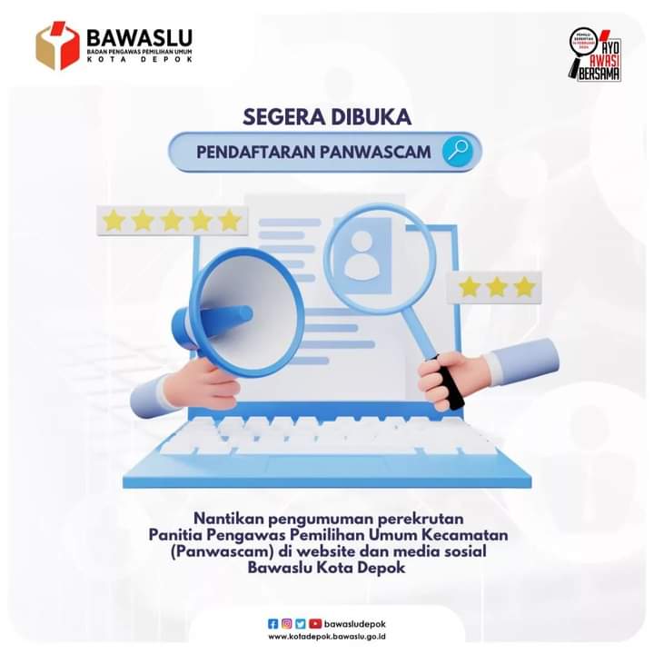 KabarLagi.Com — Kabar terbaru datang dari Badan Pengawas Pemilu (Bawaslu) Kota Depok. Dalam waktu dekat ini Bawaslu Depok bakal membuka pendaftaran bagi masyarakat yang ingin menjadi anggota Panitia Pengawas Pemilu Tingkat Kecamatan (Panwascam).