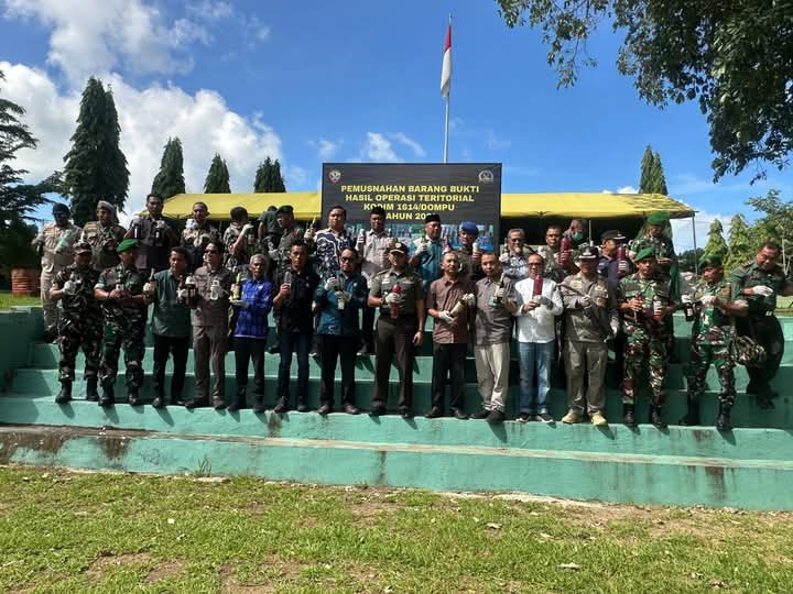 “Hari ini kami melakukan pemusnahan barang bukti hasil operasi teritorial yang dilaksanakan periode 9 Desember hingga akhir tahun 2024. Artinya dalam waktu satu bulan kami beserta jajaran berhasil mendapatkan seluruh barang bukti ini untuk kita musnahkan hari ini,” ungkap Dandim 1614/Dompu,